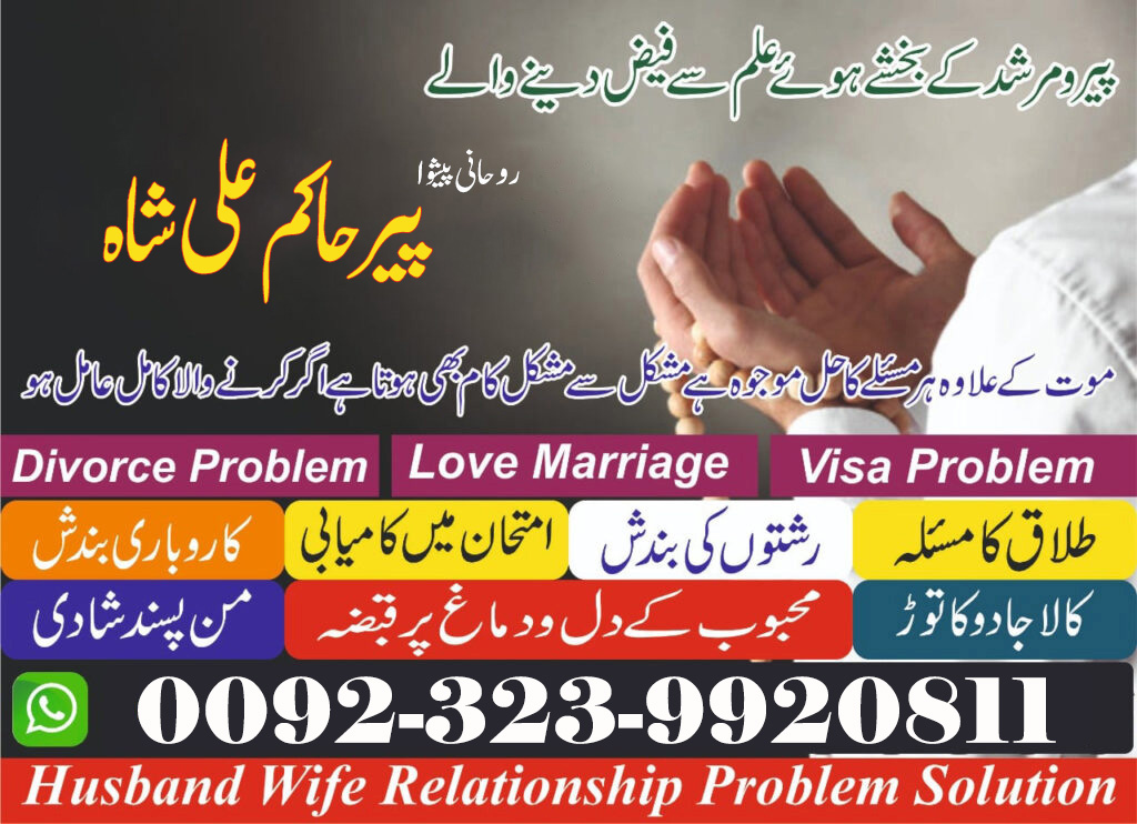 Ager ap kisi ko pasand karte hen ya pasand ki shadi karna chahty hen or apko buht se mushkilat ka samna se to ap aj hi Rohani peshwa Peer Hakim Ali Shah se rabta kren or apne manpasand shakhs se shadi kr ke apni zindagi ko khushgawar banayen.manpasand shadi ke ilawa ager apka mehboob ap se bichar gya hai ya apko chor kar chala gya ha or ap ose dobara hasil karna chahty hen to ap sirf Rohani Peshwa Peer Hakim Ali Shah se rabta kren or inse apne mushkilat ke hal or rahnumai hasil karen or apne mehboob ko wapis apni zindagi ma dobara hasil kren or happy life enjoy kren .